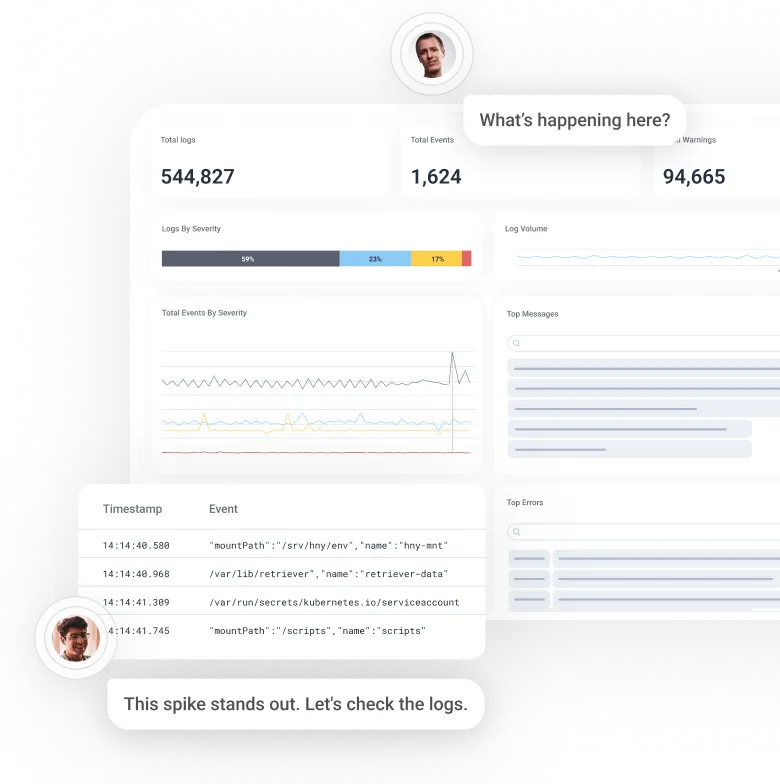 Managing logs doesn’t need to be a burden. Comb through billions of log lines in seconds, spot anomalies quickly, and resolve issues with precision so you can get back to building.