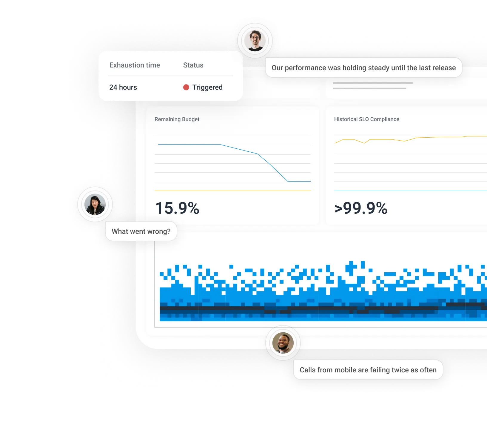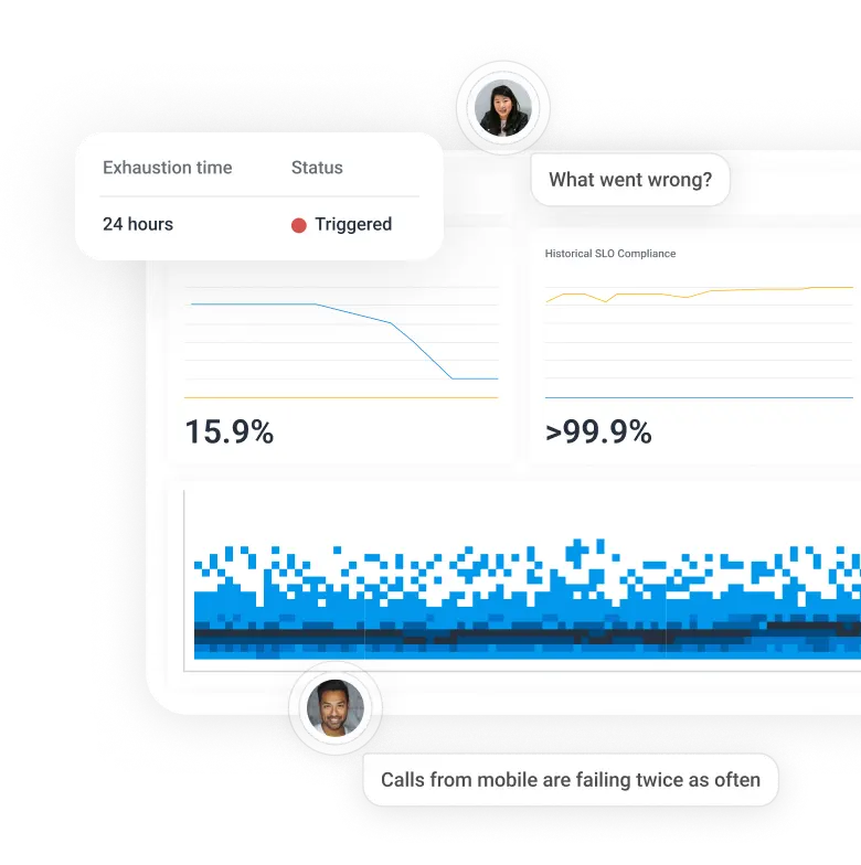 Create SLOs that reflect your critical customer experiences. Teams have the clarity they need to prioritize issues, simplifying collaboration and reducing decision bottlenecks across teams.