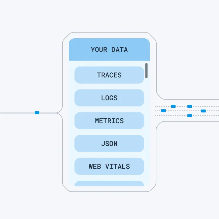 Logs, metrics, traces–send any structured data our way without paying more for the additional data you capture. Add as much context as you want, and derive unlimited custom metrics for free. Our fully OpenTelemetry-compatible platform rewards curiosity without incurring extra costs.
