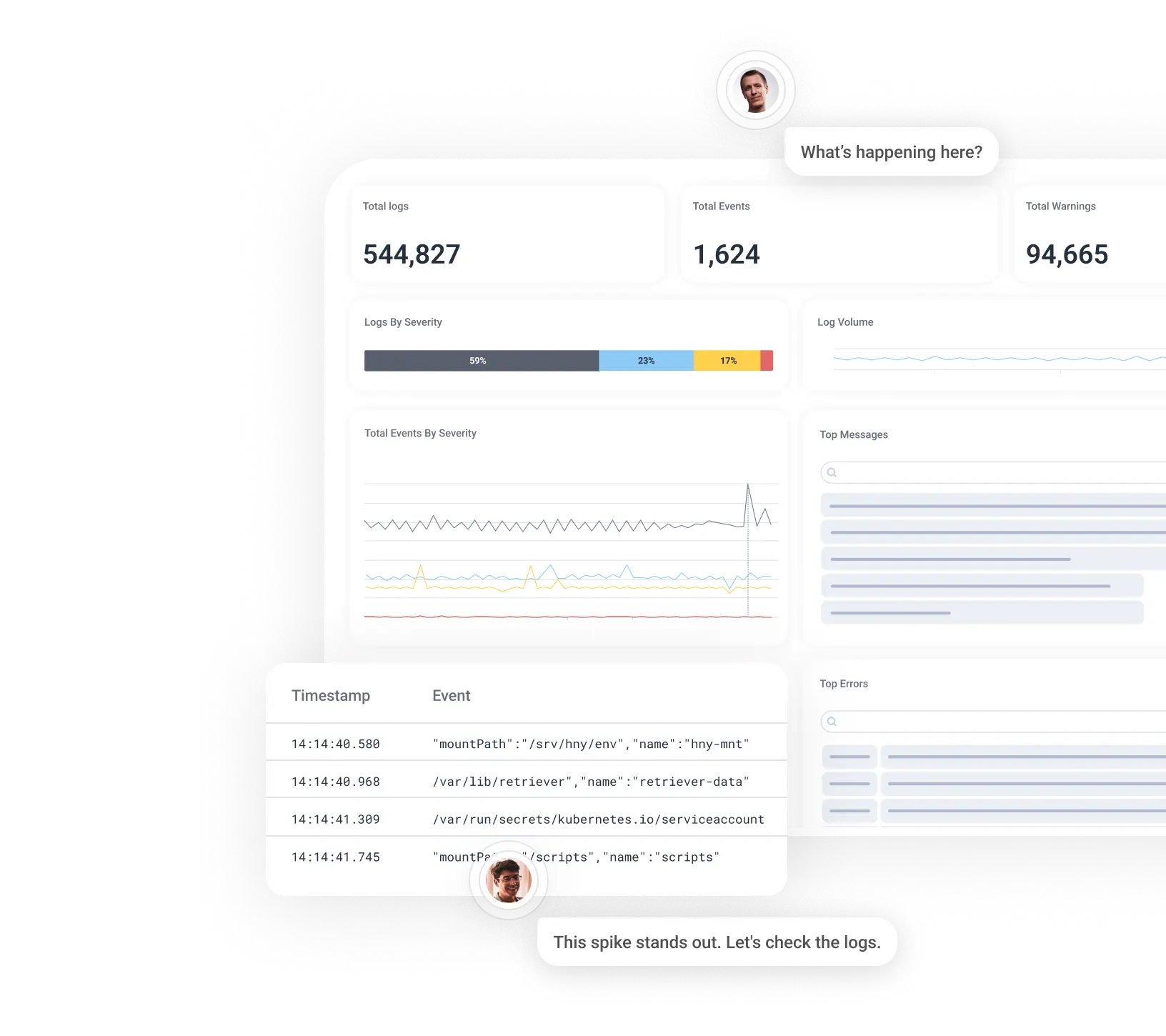 Managing logs doesn’t need to be a burden. Comb through billions of log lines in seconds, spot anomalies quickly, and resolve issues with precision so you can get back to building.