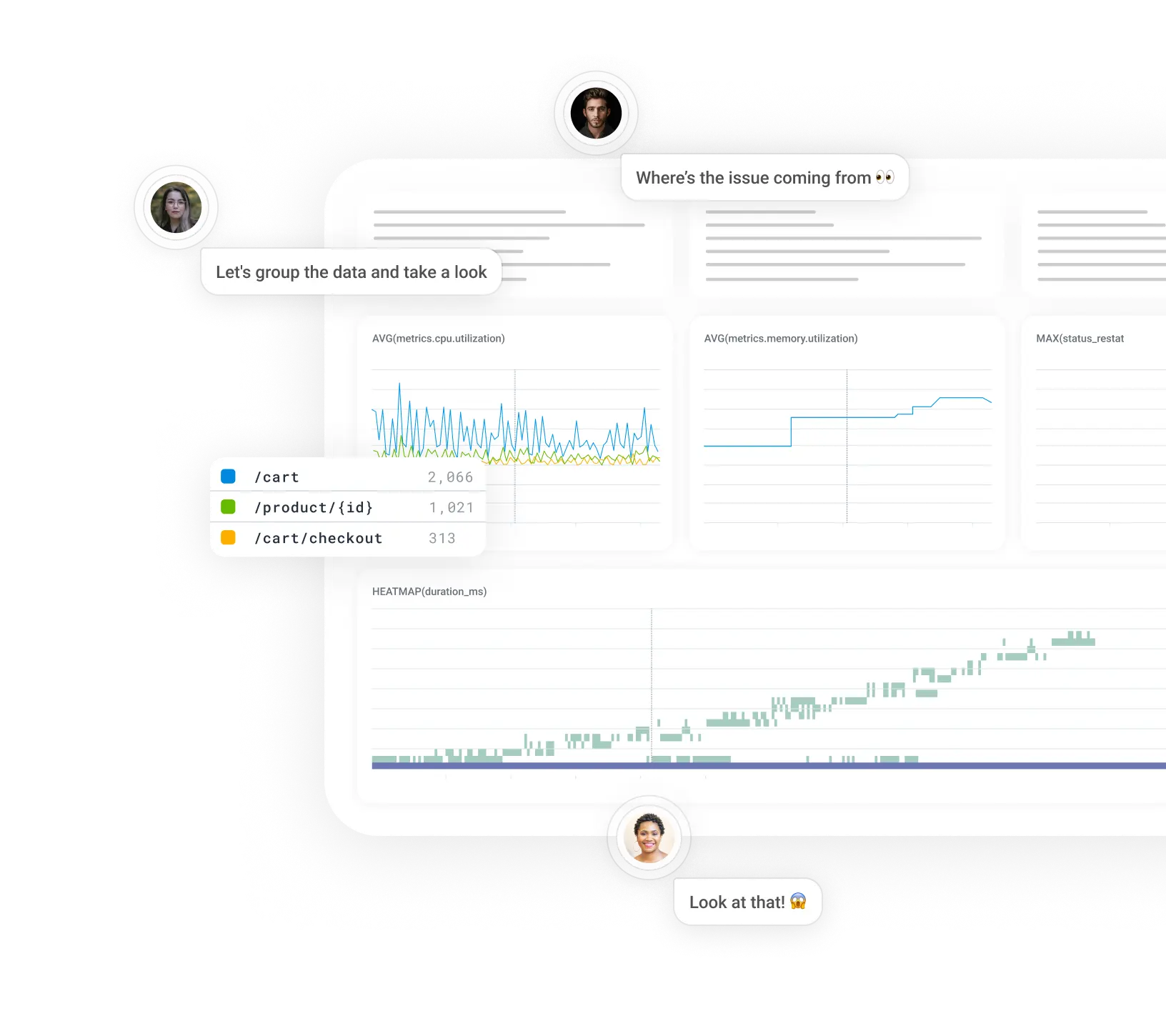 Application metrics, logs, and traces are really just different views of the same data—we help you move seamlessly between them. Got infra metrics? Honeycomb can take those, too, and correlate them with signals from your application. See the whole picture at once.
