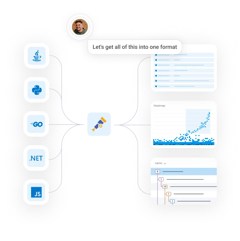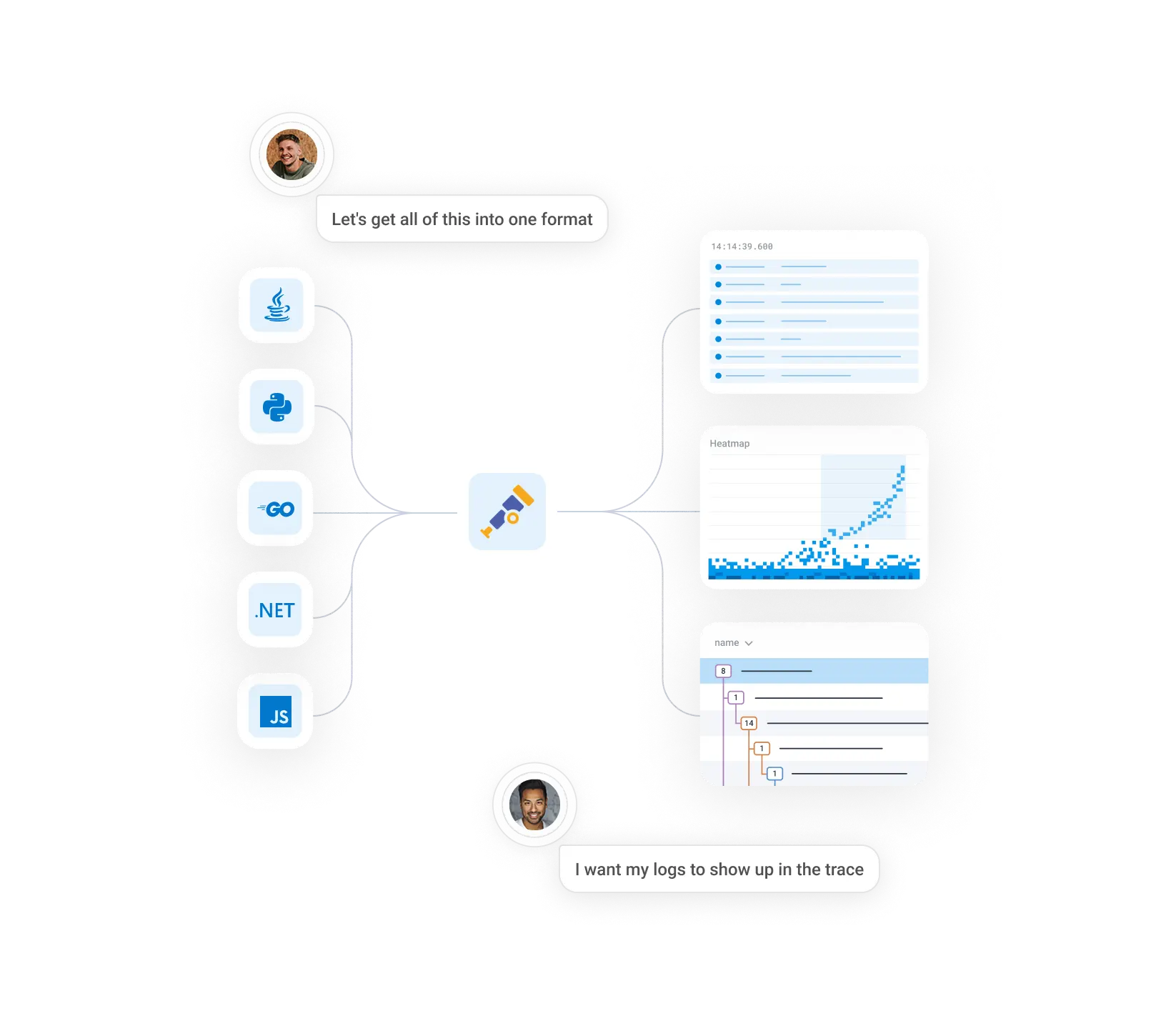 Whether you’re just starting or scaling your implementation, our step-by-step guides, best practices, and detailed examples simplify the process for developers and platform engineers alike. Backed by our expertise as active OpenTelemetry contributors, the documentation empowers you to instrument, optimize, and get value from your telemetry faster—so you can focus on delivering exceptional software. Send data with OpenTelemetry.