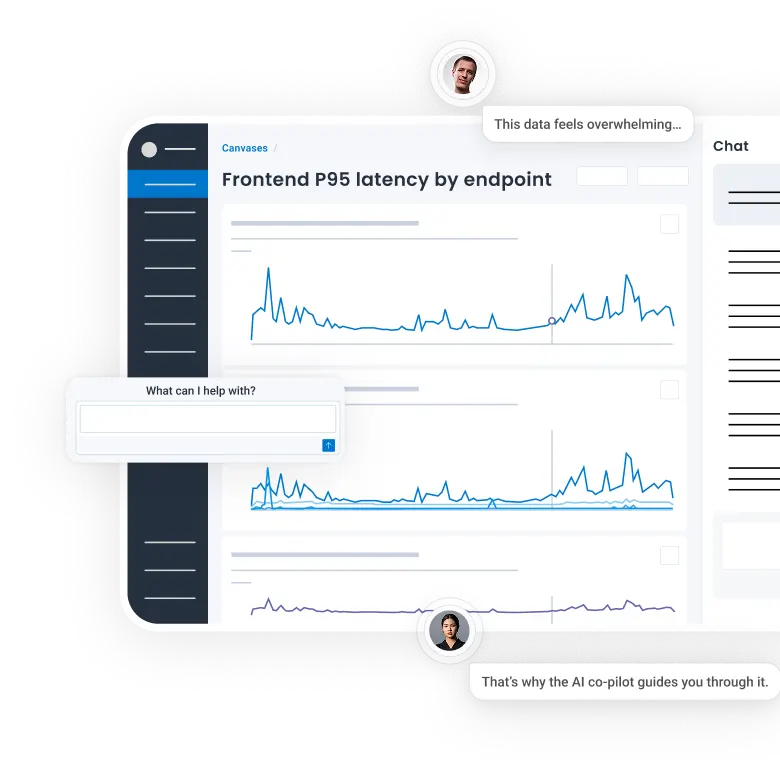 Canvas supercharges your observability practice with an AI assistant to guide your investigations and an interactive notebook for visualizing query results. Ask any question and Canvas will explore your data instantly to find the right next steps.