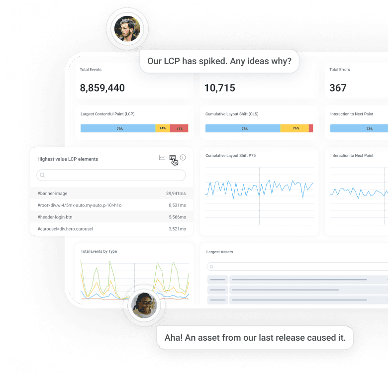 Debug Core Web and Mobile Vitals with real-time visualizations that reveal exactly what’s affecting them—in just a few clicks.